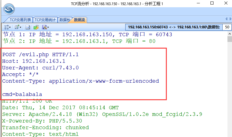 当然也可以使用网络数据包分析工具,抓取TCP流量中HTTP的数据,这里我使用的是科来网络分析器。